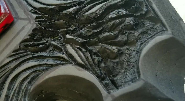 Gems were originally sculpted from clay, baked, sanded, spray paint filler, sanded, and repeat.
